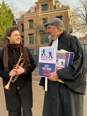 Na anderhalf uur werd het spandoek met “keep your hands off the lawyers” weer  opgerold.  Vanuit het consulaat kwam geen reactie.