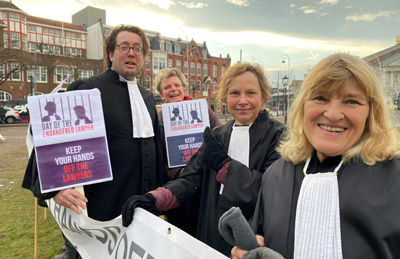 Symone Gaasbeek-Wielinga: “Ik vind het fantastisch dat de advocaten die hier zijn, ook uit Rotterdam, hun stem laten horen. We zijn niet met veel, maar het is belangrijk om in verschillende landen aandacht te blijven vragen voor de bescherming van advocaten. Deze dag dient als signaal. En bovendien: niks doen is geen optie meer.”
