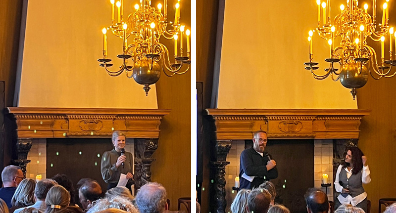 Na een korte inleiding van Emilie van Rijckevorsel ging misdaadjournalist en stem van de populaire podcast Napleiten, Wouter Laumans, samen met strafpleiter Ayse Çimen nader in op de vraag wat de rol van de media is én kan zijn voor het vertrouwen in de rechtsstaat. Laumans legt uit dat met behulp van een begrijpelijke uitleg van de achtergrond van rechtszaken, een breder publiek betrokken raakt bij de rechtsstaat. En met succes: inmiddels stijgt het aantal wekelijkse luisteraars al boven dat van menige late-night talkshow, grapt Laumans.